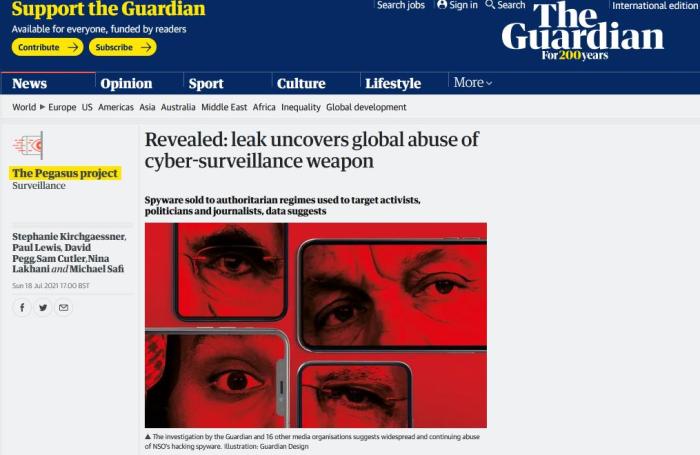 当地时间7月18日,美国《华盛顿邮报》、英国《卫报》和法国《世界报》等17家媒体共同披露,一款名叫“飞马”(Pegasus)的间谍软件在全球至少50多个国家,被用来监视人权活动人士、记者和律师。涉及人数可能高达5万人。