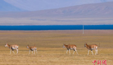 藏羚羊群高原觅食展现西藏生态之美