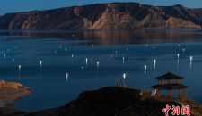 航拍青海龙羊峡库区九曲里渔灯璀璨