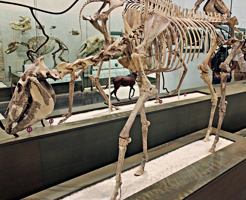 恐马化石,在上新世晚期约1200万年前进化出来的恐马被认为可能是现代马的祖先,因为恐马同现代马的头骨、牙齿等骨骼几乎相同