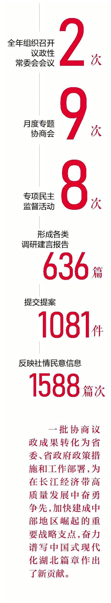 在中共湖北省委坚强领导下,省政协及其常委会坚持以习近平新时代中国特色社会主义思想为指导,坚定拥护“两个确立”、坚决做到“两个维护”,全面贯彻落实中共二十大和二十届历次全会精神,深入学习贯彻习近平总书记关于加强和改进人民政协工作的重要思想、考察湖北重要讲话精神,坚持党的领导、统一战线、协商民主有机结合,在凝聚合力上画好“同心圆”、在建言资政上当好“智囊团”、在为民服务上架好“连心桥”、在促进发展上成为“生力军”,充分发挥了专门协商机构作用。