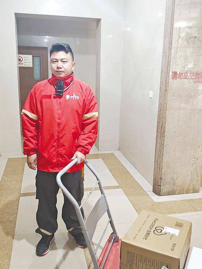 正在送快递的朱明。